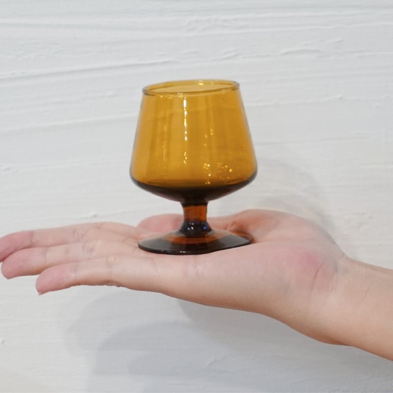 《昭和レトロの雰囲気をまとったアンバーカラーのリカーグラス2個セット》