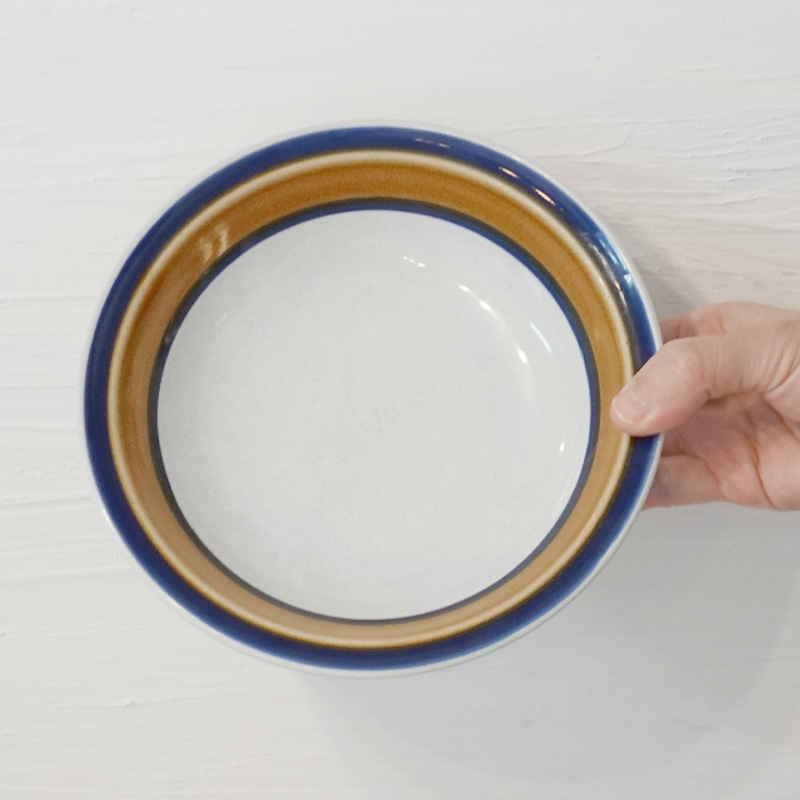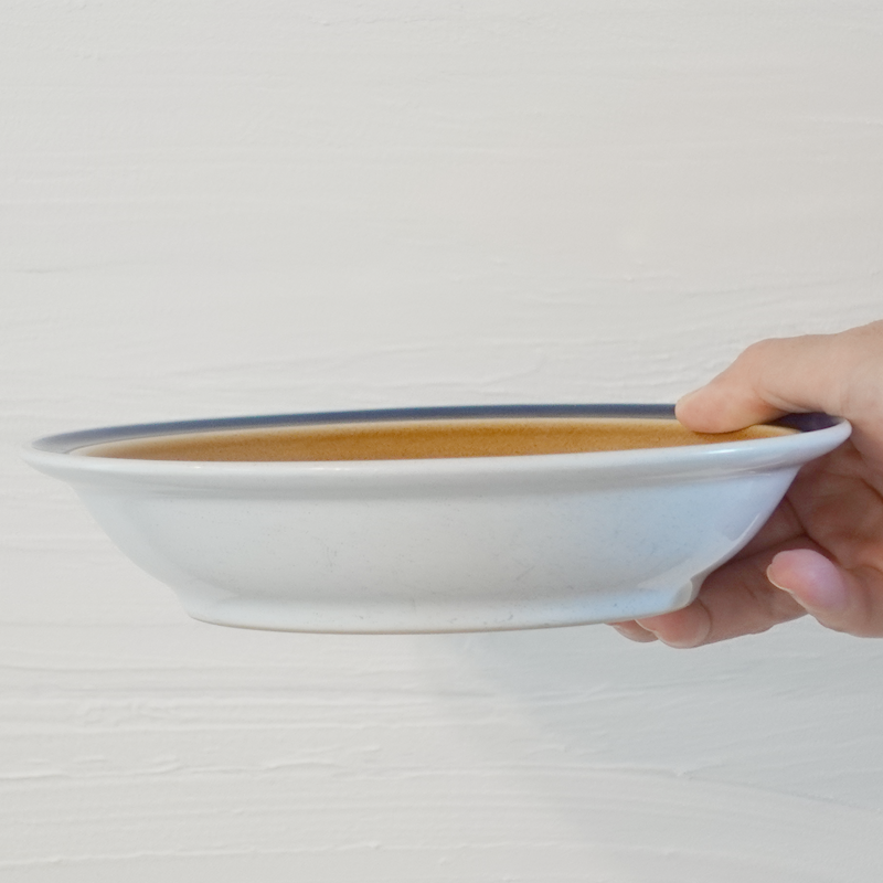 縁を飾るマスタードイエローとネイビーブルーのツートンカラーが印象的で、どこか懐かしい雰囲気を漂わせます。